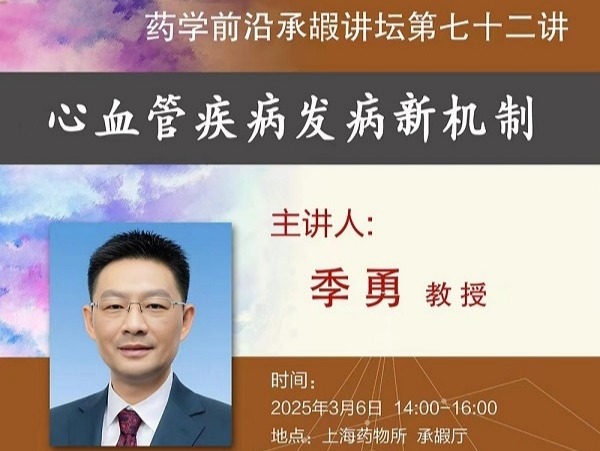哈尔滨医科大学教授季勇应邀作药学前沿承嘏讲坛第七十二讲